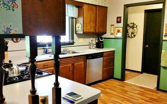 Ranch with acreage on corner of paved roads, rolling hills and pond. Modern kitchen with wood cabinets and stainless steel appliances. Exposed stairway to the full walk-out basement. Family room has brick wood burning fireplace. Gentleman's building with amped up electric and water. Barn is sectioned off for small animals, loft for hay, whole property is fenced, sectioned and hot wired. Drainage tile from house & buildings to the pond. Plus additional workshop wired for machinery, insulated and air conditioned.