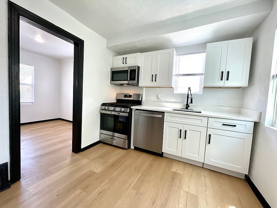 Newly remodeled home in Euclid. Fresh paint, newly updated bathroom with all new vinyl flooring through out, freshly cleaned carpet in bedrooms. 2 bedrooms, 1 bathroom and 1 car garage with basement. All appliances will stay in the home. All utilities would be the tenants responsibility. Renter is responsible for water & sewer, electric, gas. They are also to keep yard maintained. Includes ( leaves, snow removal, and yard maintence.) No smoking aloud. We accept cats for a one time fee due at signing $150. We accept dogs for a one time fee due at signing of $250. We require at least first months rent and security deposit. Depending on tenant credit we also may require last months rent as well.