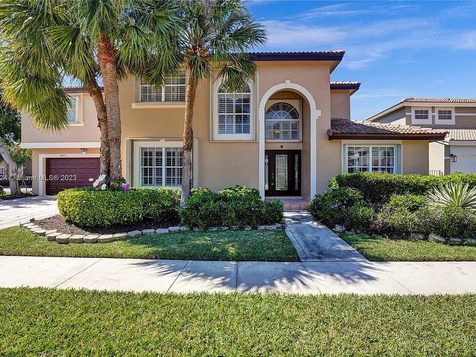 This gorgeous two-story contemporary home situated in the prestigious gated community of Regatta in Mission Bay, has it all. Beautiful saturnian Marble and Wood floors, New Roof, volume ceilings, crown moldings and plantation shutters blinds throughout, French doors, kitchen with white shaker cabinets, quartz countertops and stainless steel appliances. 1st floor features: Formal dining room, 1 bedroom, 1 full bathroom, storage. 2nd Floor features: Spacious master bedroom with vaulted ceiling, walking closet, master bathroom with tub/spa and separated shower, double sinks vanity. 2 oversized bedrooms with Jack & Jill bathroom. Private pool and patio area for entertainment. Full accordion hurricane shutters, 2 car garage, corner lot. Enjoy all Mission Bay amenities!! A must see!!