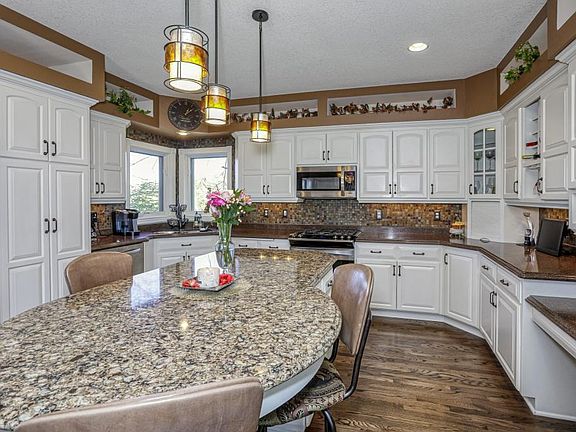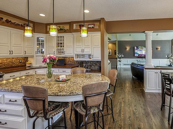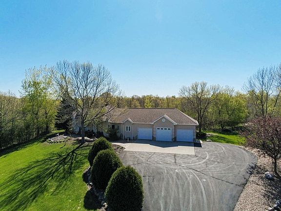 Impeccable condition one owner custom built executive walkout Rambler situated on a private 7-acre lot. Lot combines privacy, along with abundance of green space for all your outdoor activities. Completely finished Oversized 3 car garage with heater, cabinets and professionally sealed floor, equal size heated spancrete garage below. Entire interior has been meticulously maintained and updated throughout. Open floor plan with vaulted knock down ceilings, cambria center island w/silestone counter tops, spacious main floor laundry with cabinets, maintenance free deck that leads to screened porch, formal & informal dining, surround sound, full master suite and second BR complete main level. LL is entertainers dream with custom built-ins, full wet bar, game room area that walks out to patio. Recent updates include remodeled bathrooms, new carpet, floors re-finished, remodeled bar, new air exchanger. Located just minutes from Legends Golf Course!