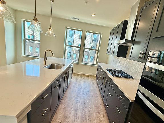 BRANDNEW Luxury Townhouse Style condos is ready for its very first tenant. Over 2,400 sqft on 2 levels with 3 bed 2.5 bath and main level office. Whole house faux Wood Cordless Blinds! Gourmet Kitchen features a spacious island, shiny stainless steel appliances, beautiful quartz countertops, a roomy walk-in pantry, and lots of drawers. Main level office and a large balcony wtih obstructed south view. Primary bedroom with large walkin closet and south facing windows. The spa-inspired primary bath is complete with dual vanities, a private water closet, a sports shower with a large drying area or a walk-in shower. EV CAR CHARGING IN GARAGE. Walk to shopping and restaurants, Lotte grocery store. Water and trash is included in the rent. Rents includes Water and Trash