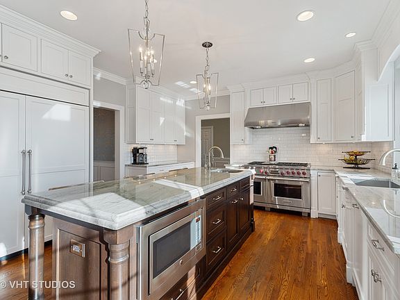 Lakefront Luxe!!! If price is no object, but value is critical, this is the one to see. A "WOW" from the minute you walk in the front door and see the gorgeous $5k Restoration Hardware chandelier! So much house for under $1 mil! Approx 7000 sf of finished luxury over three levels, featuring 5 bedrooms up - all with volume ceilings!- plus one room in the walk-out basement currently being used as a bedroom with en suite full bath. The spacious master includes a lovely seating area that overlooks the pool and lake, with a walk-out balcony. Perfect for sipping morning coffee or evening wine. Two of the other bedrooms are en-suite, with the remaining two sharing a hall bath- 5.1 baths in total. The centerpiece of the main floor is a gorgeous magazine-worthy all-white kitchen and eating area with quartzite, Wolf, Subzero, beautiful lighting and a convenient back staircase to the second floor. Work from home or need just space for your "stuff"? Not only is there a study (currently used as a playroom) with built in white shelving/cabinets but the four-season sunroom includes a built-in desk. Downstairs you'll find a walk out basement adjacent to the pool area, that boasts a full white kitchen with newer stainless appliances, a huge recreation room area with beautiful stone fireplace, a screened in porch, a wine cellar, a workroom, storage areas, and a full bath that is newly updated and thoughtfully redesigned to even include lockers. The outside is just as gorgeous, with new Trex deck and railing system, a fenced, top of the line in ground pool (including spa and sun bed) with paver surround, set on over two acres overlooking beautiful Lake Ashley - STUNNING! Resort living at home! Great Deer Park location in an awesome neighborhood- a hidden jewel! Barrington Schools! See it today!
