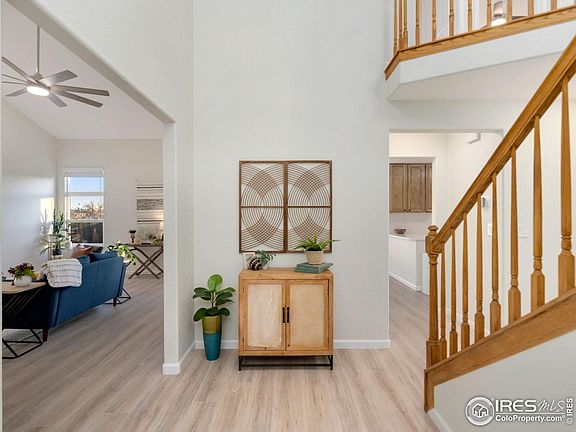Beautiful, updated home in southwest Loveland backing to open farm field. This home features new paint and window coverings throughout, new Pergo waterproof laminate flooring on the main level, as well as a main-floor primary bedroom with a large walk-in closet. The open floor plan with vaulted ceilings is perfect for gathering: while your guests enjoy the gas fireplace in the living room, others can enjoy the dining area's welcoming bay windows and the kitchen's gorgeous new quartz countertops. Outside, the new concrete patio joins the freshly landscaped backyard, where you can satisfy your greenthumb in the garden, let kids/pets safely play, finally build a chicken coop, or simply enjoy the privacy. Upstairs showcases all new carpet, 2 bedrooms, and an updated bathroom. The fully finished basement features a full bath, a spacious family/rec room, and a huge bedroom with its own walk-in closet. Store those toys within the 3-car garage's tall 3rd bay. The home has a newer A/C, and all the basement window wells have been newly replaced.