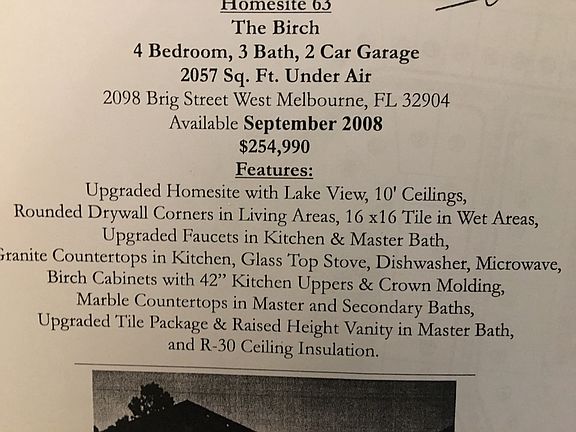10 Ft Ceiling. Rounded corners on walls. Open Floor Plan. Granite countertop. Gated Community. Excellent Schools. Meadowlane Elementary/Central/Melbourne High. Very close to Magnet School West Melbourne School of Science. House protected by Termite Bond projection since it was constructed. No issues. High Ceiling. 3rd Full Bath in the 4th Bedroom. Open Floor Plan. Kitchen island. Close to the mailbox. Formal Dining Area. Extra open for office or Formal Living. Master bedroom is huge, with a 1 walk-in closet. Kitchen Counter is Granite and is beautiful. A huge island which serves as a table replacing the need for a breakfast nook