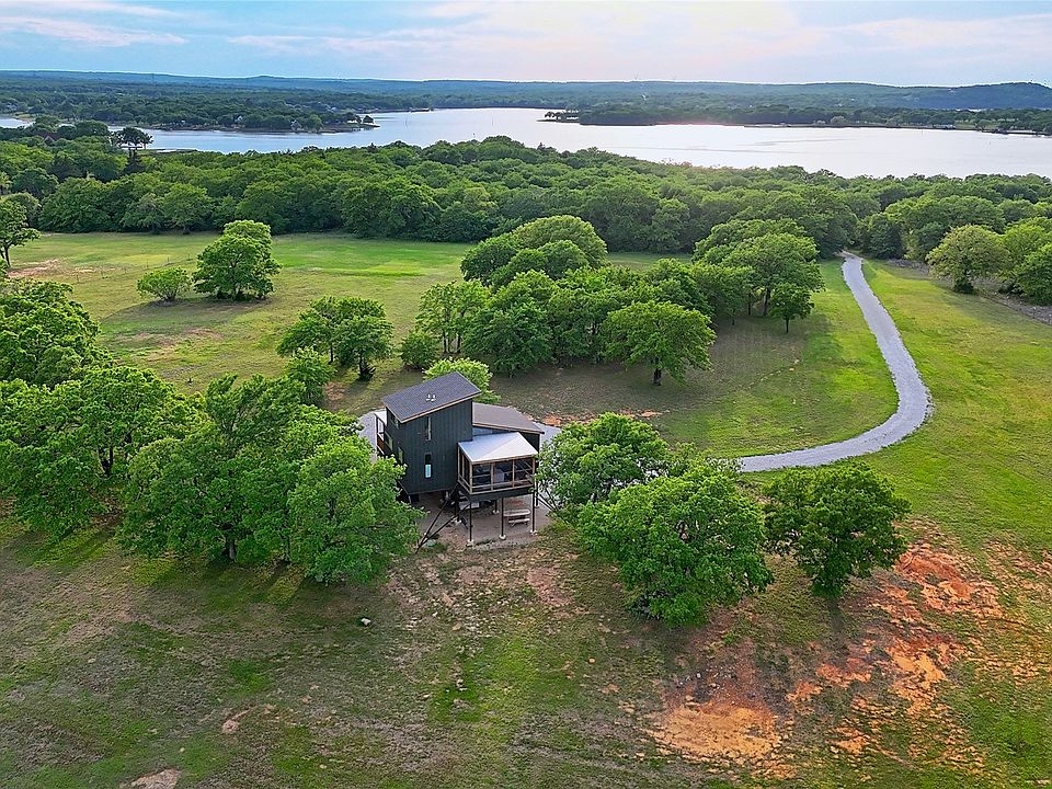 2 Bdrm,2 Bath, One Of A Kind Fully Furnished 3 Story Custom Treehouse - Bowie-AMON CARTER LAKE - City Escape! Also excellent VRBO opportunity - 10.97 acres of gorgeous property located across the street from Amon Carter Lake. The house is perched amongst beautiful oak trees & has a 2nd level screened in patio with a picturesque view of the stock pond & rolling terrain of the previous back 9 golf course & beautiful oak trees throughout the property. The living area with vaulted ceilings, large ceiling fan & multi-color electric fireplace and 55 inch HGTV. The kitchen & extended island make this open floor plan perfect for entertaining. The primary bedroom located on the 2nd level with a sliding glass door access to the front porch sitting area. Gorgeous master bath. Loft with private wall & tree top views include a queen bed & guest bath. The area below serves as a wonderful lighted outdoor entertaining area. Also included is a 16X30 metal shop.