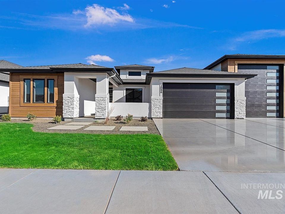 The Davenport RV by Tresidio Homes. This is a rare opportunity on a highly sought after Davenport with full RV garage in Indian Creek Ranch. This one has lots of optional features and a cool modern style. Stucco exterior with courtyard entry and cedar accents. Open greatroom with coffered ceiling and wood beams. The kitchen has two tone flat panel cabinets with quartz counters and stainless appliances. Luxury master with freestanding tub, zero entry tile shower with 2 heads and a huge walk in closet that opens to the laundry room. The covered patio and north facing back yard are perfect for shady entertaining. Huge RV garage with roll up door at the back and extended patio. * additional plans available in this neighborhood. If this home doesn't have everything you are looking for; Tresidio Homes can build a customized home, just for you. We have 14 communities to choose from in the Treasure Valley and plans from 1400 to 3500 sq ft. All of our plans can be tailored to your needs and finished to fit your style.