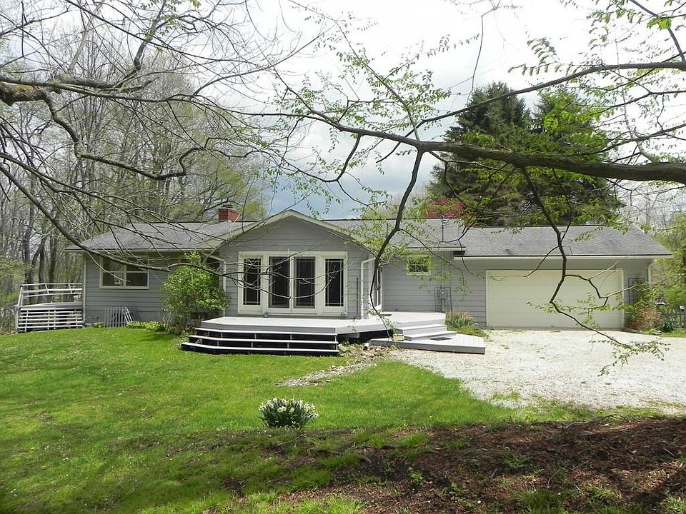 Beautifully private setting for this ranch home down private drive in Granville. Surrounded by 35+ acres of Granville Green Space, this home features two floors of living space. The main floor features spacious living room with fireplace, kitchen with island and cabinetry by Bob Morrison, family room with easy access to outdoor living spaces which include two decks. The finished walkout level was designed to be a deluxe master bedroom with access to the rear yard and Vermont Castings wood burning stove. There is additional finished living space in the walkout lower level in the den area that has built in bookshelves. Enjoy the privacy and nature without the worry of maintaining all the acreage!