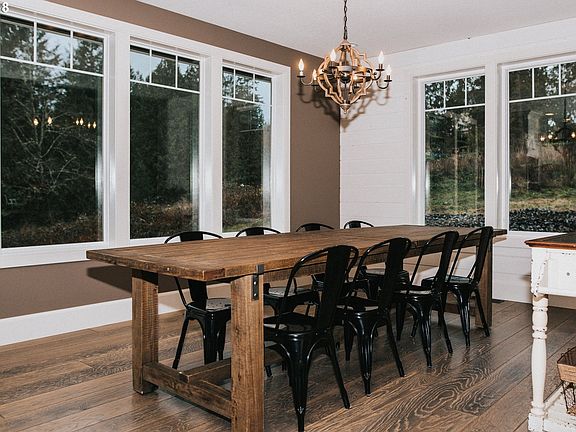 Modern Farm Home waiting for you. Warm hardwoods,beautiful custom kitchen with rustic touches, formal dining room, den and large living room with gas fireplace with vaulted ceiling and lots of windows. Grand master suite. Downstairs you have a family room, craft room and two more bedrooms and a full bath. You also have a large finished storage area. This sits on over 5 acres very private, just minutes from I 5 but feel miles away.