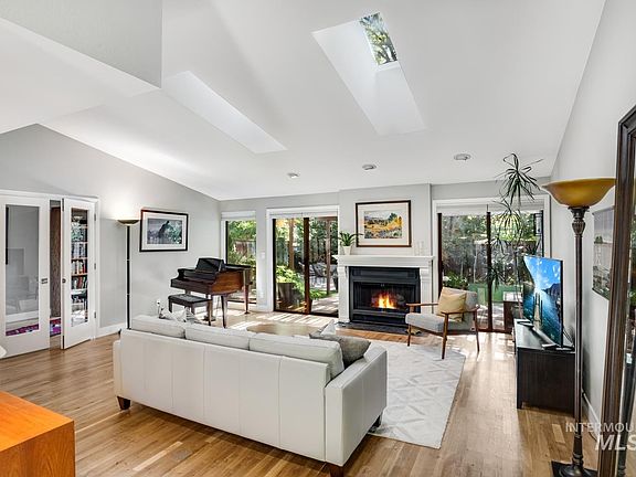 CAPTIVATING, UPDATED SINGLE-LEVEL HOME W/HIGH END FINISHES FEATURING A MODERN FLAIR. SITUATED IN DESIRABLE RIVER RUN SUB ALONG THE BOISE RIVER & GREENBELT COMMUNITY POOL, TENNIS & PICKLE BALL COURTS, & CLUBHOUSE. BEAUTIFUL WALKING PATHS & WATERWAYS. THE INDOOR-OUTDOOR PLEASURES ALLOW YOU TO DREAM, ENTERTAIN, OR JUST BE. Spacious open floor plan flows effortlessly between living spaces. Abundance of oversized windows. Gourmet kitchen for the at-home chef featuring large island w/leathered granite, 6-burner GE CAFÉ gas cooktop, double ovens, tiled backsplash, walk-in pantry, beautiful custom cabinets, breakfast bar, & informal eating area w/built in desk and cabinets. Dining area w/floor-to-ceiling windows, plus den, office or workout room. Living room w/vaulted ceiling, gas fireplace, skylights, & sliders to patio. All bedrooms w/private patios & vaulted ceilings. Master suite has nice walk-in closet, skylights, & window seat.