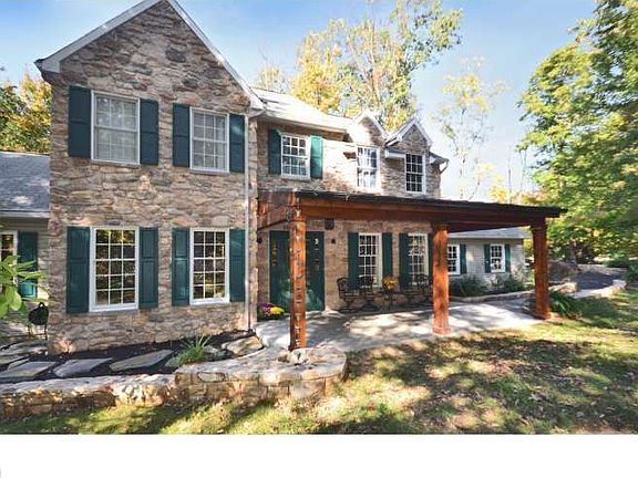 Unbelievably picturesque...Creek Views in Desirable Pebble Hill neighborhood, complete with a creek and a friendly carp named Carl! This well maintained 4 bedroom 2.5 bath home is thoughtfully situated on a large corner lot surrounded by mature trees. The newly renovated front porch with wooden beams and stone appointments evokes the feeling of a mountain retreat, bring your rocking chairs! As you walk through the front door your eye is drawn to a spacious light filled eat-in kitchen open to the den and boasting a cozy propane fireplace with blower for heating an ample area of the first floor. From the den you can walk out to the deck and enjoy the view of the lovely, newly fenced backyard giving way to the small stream where Carl is happily swimming! The finished walk-out basement has an additional 1000 sq ft of living space, not including the large storage closets. The entire HVAC was completely replaced last year and is still under warranty. This charming home is within easy walking distance to parks and Kutz elementary school, and is in the award winning Central Bucks school district. A 2 car garage completes this lovely home. Minutes to Doylestown Borough! You wont believe the tranquility this property offers!