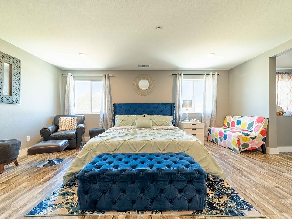 Welcome to our beautifully brand-new and modern 6-bedroom home in a quiet cul-de-sac and serene Spring Mountain neighborhood! It is only a 10-minute drive from downtown Riverside and central to everything Riverside has to offer! This is a very spacious 6 bedroom/4 bath double floor home with a driveway to fit 3-4 vehicles along. The kitchen features granite countertops and stainless steel appliances. The bedrooms feature carpet flooring and dual vanities in the master bathroom. The House comes with solar panels which save you money on your monthly utility bills no smoking allowed
