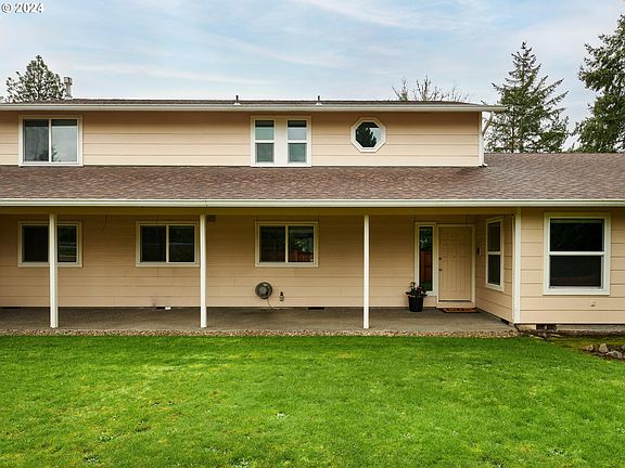 So much potential! It's not often that a property comes on the market that allows you to be a 'Gentleman Farmer' on a large level lot (.91 acres), that is also close in. There is room for everything! Plenty of room to park cars and an RV, a spacious covered porch leads you to the front door! Comfortable casual living, plenty of space inside. The primary bedroom is found on the main floor with a Jack & Jill walk-in closet (perfect for a nursery, office, or closet expansion). The center of the home features an expansive dining room off the kitchen with window seats overlooking the back yard. There are two full baths on each level. The family room boasts a cozy fireplace, book shelves, and built-in features, with access to the back yard. Bedrooms 3 & 4 share a Jack n' Jill bath & bedroom 5 has a door to the continental bath, so convenient! Don't miss the large walk-in storage spaces on either end of the upper level, the storage is impressive! The grounds are fully fenced, level, and there are beautiful roses, raspberries, and strawberries. Pear, apple, plum, and Asian pear as well as juice and seedless table grapes! The outbuilding is perfect for storing all your tools, bikes, seasonal items! The property is a short walk to from the newly completed Powerline trail, bike park, dog park, and Butternut Creek Playground and Splashpad! The property is also conveniently located to Cooper Mountain Nature Park, Jenkins Estate, and Camp Rivendale. Groceries and eats are nearby, come and see this special property for yourselves!