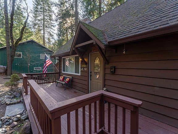 This cabin outshines them all! Situated in the woods surrounding Mi Wuk Village its a rare find with it's level entry and lovely location. The recently updated kitchen has granite counters & a dining bar opening onto the dining/family room area. RELAX upstairs in the new bathroom which has a jetted bath with new vanity, flooring and more. One bedroom upstairs has 2 queen beds, but could be a nice sized master, the other bedroom has a queen bed. The downstairs bedroom off the front of the house is large and fits and a CAL KING SIZE BED. The deck around the cabin beckons you to relax and enjoy the gorgeous views. A 2 car garage with parking/storage and a large driveway. A great 2nd home/vacation income property or your dream home! Come and see all this lil beauty has to offer!