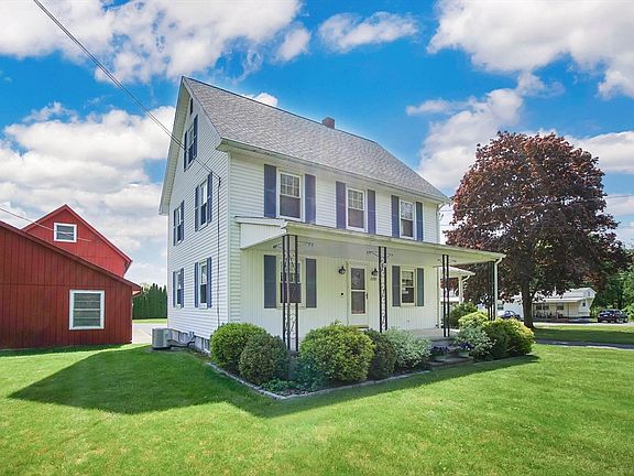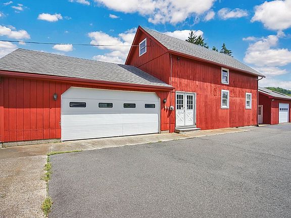 Welcome to your FARMHOUSE COLONIAL with a 2-car detached garage plus a massive 36 x 24 heated workshop, half bath, second-floor storage area, and an additional 24 x 30 2-car detached garage! Enjoy relaxing nights on two covered porches with scenic mountain views and ample parking. Previously used as a HVAC business, the property offers versatility for your own business or storage needs. Meticulously maintained, the first floor features a spacious kitchen with plenty of cabinets and appliances, a dining area, home office, half bath, and a living room with built-ins and a picture window. Upstairs, find the main bedroom, two additional bedrooms, and a full bath with jacuzzi and shower. The third floor offers a main bedroom or teen suite with a tandem bedroom or sitting room. With its spacious yard and abundance of parking, 2099 Calkins Rd offers endless possibilities with regard to the garages, close to Mass Pike & all main routes a PLUS!