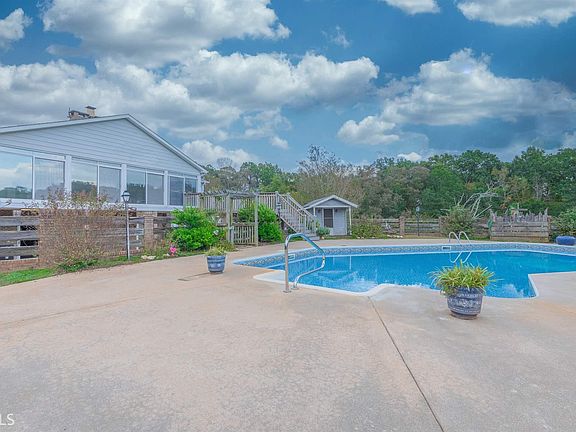 Beautiful. Spacious. Private. Wonderful place to raise a family with room for entertaining inside and out. This home opens to a huge great room with brick fireplace and two sets of double doors that open to the sunroom. It has floor to ceiling windows that overlook the Lazy L oversized pool with new liner and pump. Main floor has a separate dining room that would serve a large family. Kitchen has solid wood cabinets and a pretty granite topped island. Master suite includes rooms with views and a large bath with a soaking tub and separate shower. Two more spacious bedrooms and bath are on the main floor. Basement level has it's own living quarters with a second kitchen a bedroom and full bath. Patio has an outside kitchen that joins the pool area with a pool house. It has a half bath and bar area with a large shop attached to the back. This property has road frontage on Hartwell Hwy and a long winding driveway. Acreage includes a spring fed pond and lots of beautiful hardwood trees as well as open fields with pretty deer passing through.