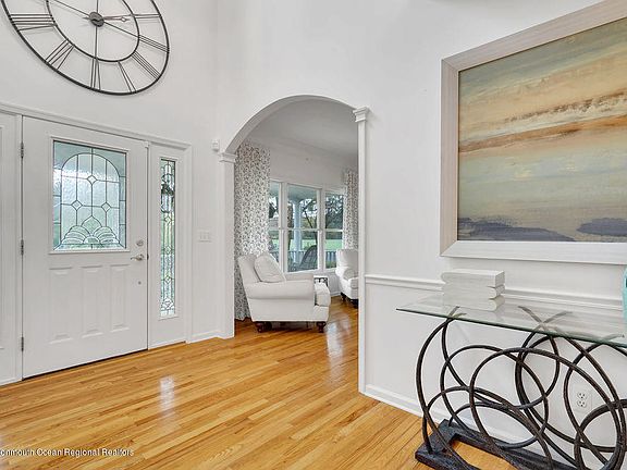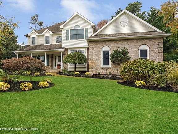 Opportunity Knocks!! Immaculate 4 BR, 2.5 Bath Center Hall Colonial w/ FULL FINISHED BASEMENT in highly sought neighborhood of Wall. Features include inviting Front Porch, Two Story Entrance, Hardwood Floors and Decorative Moldings thruout, Open Floor Plan, Dining Room w/ Trey Ceiling, Family Room w/ Gas Fireplace, Awesome Center Island Kitchen w/ popular White Cabinetry, Eat In Area, and Stainless Appliances, Four Generous Sized Bedrooms on Second Floor, including Master bedroom suite w/ Trey ceiling, Large Walk in Closet w/ Organizers, and upgraded Master Bath w/ jacuzzi, Finished Basement w/ Rec Room and exercise Room, Large Deck overlooking Paver Patio, with wooded views. Minutes to Jersey Shore beaches and Route 35 shopping. The perfect Wall choice for you, the next Owner.