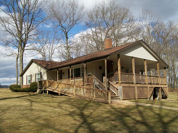This Classic Ranch with 3 car garage sits on 4.77 Acres! Featuring many updates, including newer roof, vinyl siding, Hunter ceiling fans, furnace and main garage door. There is a LARGE family room in the lower level that gives you added space to relax and a LARGE wrap around deck for outside entertaining! Park in all 3 bays of the garage or use the smaller side as a workshop.