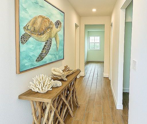 Brand New 4 Bedroom 1- Story DR Horton home in the gated community of Sabal Pointe. Located only 3 miles to Hutchinson Island beaches and right next door to Downtown Jensen Beach. Tons of upgrades including Full Hurricane Impact Windows and Doors, Quartz waterfall kitchen island, Smart home which has video/camera doorbell, electronic lock front door, control garage door remotely, alarm sensors thru-out, multiple smart switches, smart thermostat and lights all integrated to the IQ panel which is the hub that bridges entire home devices to the Qolsys IQ Panel touchscreen, glass shower door and dual sinks plus tub, wood tile thru-out entire home. This particular home is one of the largest lots in the community backed up to the preserve and close to community pool. Photos are virtually staged and don't depict the "exact" characterization of the home. Owner/Agent
