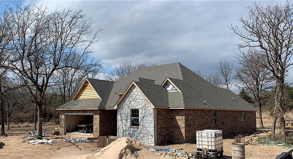 Welcome to Pecan Ridge. The newest neighborhood just north of the City of Jones. Featuring a 2000 sf minimum and 1 acre MOL lots. This beautiful 5 bedroom 3.5 bathroom home is the first one in the addition, and it is setting the standard high. With a Samsung Smart Hub Refrigerator! Notice all the fine details that go along with this open concept. In the kitchen notice the large granite island, a large pantry, and brand new hi-tech appliances to cater to your every need. In the master bath notice the large soaking tub, a huge walk in shower with a luxury shower head, double vanities, a huge closet, and custom tile and granite combine for a great master suite experience. The east bedrooms share a Jack and Jill bathroom with shower and tub. As we take the grand staircase up to the second level you will notice the upstairs game room along with another bedroom with a study nook and a full bath. The grand entry has to be seen in person. The north bedroom could be an office or extra bedroom.