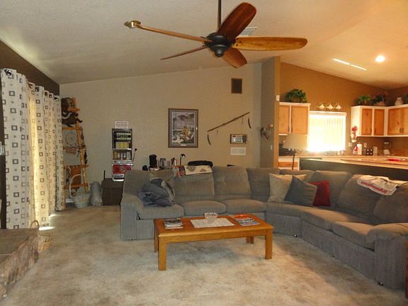 Timeless style with a southwestern county flair. 1 level tile roof home in Laughlin Estates. Owner pride, well maintained loads of amenities; granite counters kitchen & master bath, beadboard cupboard doors, rock wall Fire Place in great room with pony wall between living and island kitchen, all bedrooms have mirrored wardrobes, ceiling fans, verticals. Huge Covered Patio, landscaped front and rear, fenced. Attached 3 car garage with lots of room!