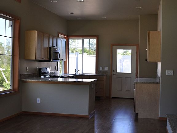This home is situated on a corner and has a great mountain view from upstairs. The open floor plan has oak hardwood floors, new carpet, slab granite counters and a main floor master suite. It's been very well maintained and is move in ready! The spacious 2 car garage is off the alley, and there is a park at the front of the home. Stainless appliances and the washer and dryer (up by the bedrooms) stays. $100 HOA pays for all ext maintenance (roof and gutter cleaning and ext painting) and landscape.