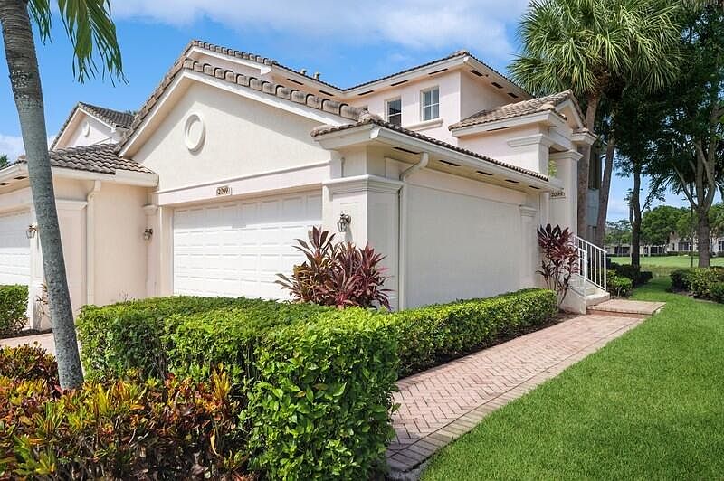 Move right into this desirable 3 bedroom Coach home with water view and 2 car garage located in the heart of Wellington. This lovely unit offers a spacious open floor plan, vaulted ceilings, tiled living area, luxury stainless steel appliances, bonus flex space and much more. Relax on the screened covered balcony and enjoy sunset views. Community amenities include pool, clubhouse and fitness. Owner/Agent