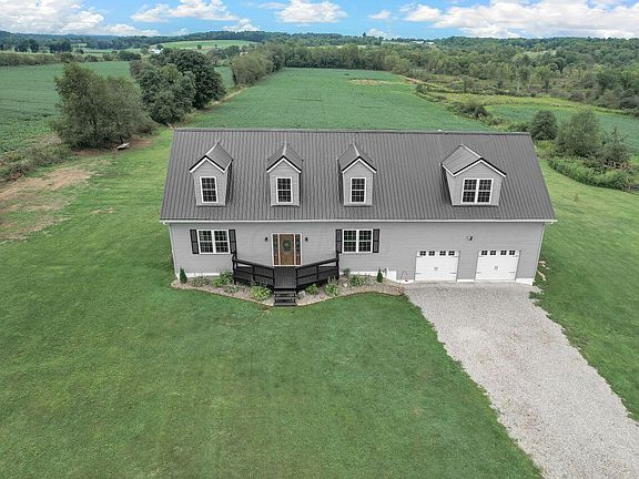 Country living at its finest. This custom home was built in 2013 and sits on two acres of peaceful serenity in the North Fork School District. This spacious family home has four to five bedrooms with walk-in closets and three and a half baths. Primary bedroom includes a garden tub, shower, and a convenient second floor laundry room. Amish custom built kitchen overlooks the landscape and breathtaking sunsets. Walkout basement with a finished bar are an Ohio State fan's dream. Outside stone patio with additional entertainment area leading to the above ground pool and deck. Come and see this gem!