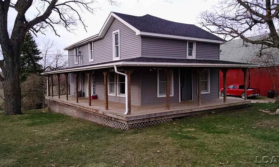 Spacious two story farmhouse on 2 acres. Features include an eat-in kitchen, French doors that lead out to the wrap around porch, large living room, 3 bedrooms, and enclosed porch. Large 60x80 barn and 20x40 outbuilding. One year home warranty included in the sale of this property.