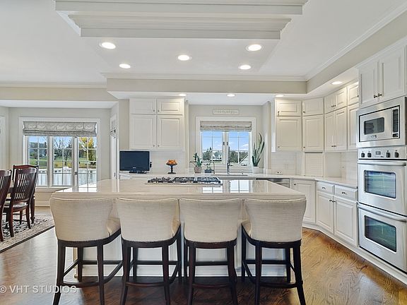 Talk about a "10" out of '10'! Can't wait for you to see the transformation of this 1990's home to the stunner it is today! This house has the whole package. Enter the foyer and the view of the spring fed lake will take your breathe away. Homeowners have opened up the kitchen/family room area so that there is not only an open floor plan but also a spectacular backyard view from the full bank of windows in the rear of the home. The WOW factor is definitely the chef's kitchen which is also the heart of this home featuring white cabinetry, quartzite counter tops, marble backsplash, glass cabinetry and high end appliances. The butler pantry leads to the oversized dining room and is opposite the foyer to the formal living room. Beautiful wood floors grace this level. And don't forget the library! Yes, there are officially two spaces for working at home so each person has the privacy and space to carry on work. The primary bedroom suite offers a deck overlooking the backyard, a fireplace and spectacular private bathroom complete with soaker tub, oversized shower, double vanity and extra prep sink along with his/her walk in closets. There is a Jack and Jill bath between two large bedrooms and an en-suite for guests. The basement boasts a walk out with full bathroom, large work room, exercise room and a 5th bedroom. The large rec room is perfect for entertaining. Doors lead out to the pool level and fully screened gazebo. The sandy beach is waiting for you to climb into the kayaks, take a ride on the pontoon boat or cast your fishing pole for a catch! This is the one! Barrington schools.