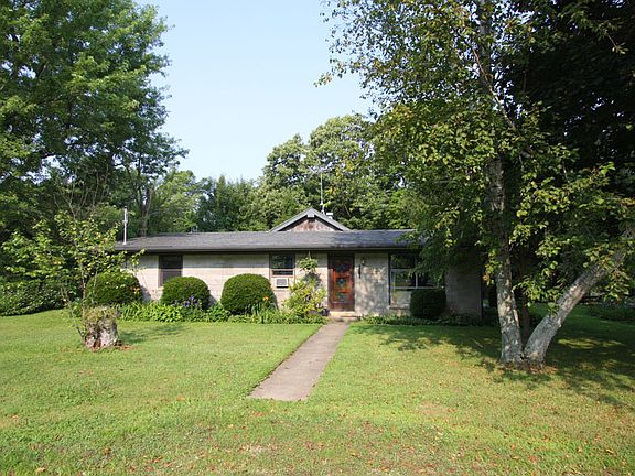 A lovely rustic ranch cabin home located in COLLEGE township with 10 cleared acres, with the remaining 22 wooded which lead up to the Kokosing River. Mere minutes from Kenyon College and the KAC this house is a great get away cabin, nestled back from the road on a gentle rolling hill with serene privacy and calming views of nature. With such a unique lay out his home has so much to offer, including a nice sized living room with wood burning fireplace, a step saver kitchen, relaxing deck overlooking the peaceful countryside, a detached 2 car garage plus space for a workshop. An excellent spot to build your dream home!