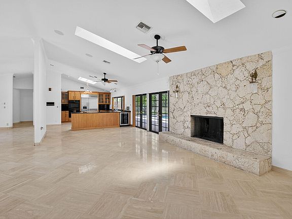 Spacious and updated 5-bedroom, 4-bathroom home located in highly desirable Estancia West. Situated on a private lot over 1/3 acre, this property features an open floor plan with high ceilings, abundant natural light, and skylights throughout. The split layout includes a large primary suite on one side and four additional bedrooms with three full bathrooms on the other. Gourmet kitchen includes luxury appliances: built-in Thermador refrigerator, Thermador double ovens, and Fisher & Paykel double dishwasher. The home also offers over 700 sq ft of covered patio space, a private pool, and a large backyard -- perfect for entertaining or relaxing. Additional features include: Full impact glass and doors, a Whole-house generator and A Full solar panel system. Located within walking distance to house of worship and close to top-rated schools, shopping, dining, and major roadways. Rare opportunity in one of Boca Raton's premier gated communities.