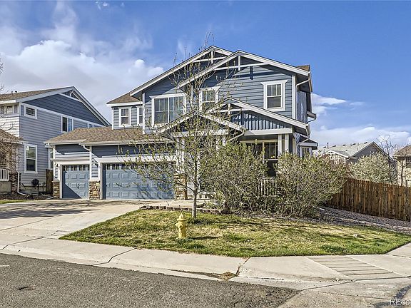Welcome to Saddle Rock Highlands! This lovely two story traditional home with a full finished basement features 6-bedrooms, 4-bathrooms, and sits on a spacious corner lot on a cul-de-sac. The main level features warm hardwood flooring, a open living room & dining room, a spacious island kitchen with a breakfast area, sparkling stainless steel appliances, and an abundance of counter space. The large family room has a gas fireplace and built in shelving nooks. Convenient main level bedroom and a full bath. Head upstairs and you'll find the primary bedroom and a 5 piece primary bath with a large walk-in closet. There are 3 additional bedrooms and another full bath on this level. In addition there is an open loft space that would make a great play area, second den, bonus room etc. The basement level features 2 bonus rooms (one makes a great home theater/media room and is wired for surround sound), there is a custom wet bar for entertaining, an additional bedroom, and a 3/4 bathroom. The spacious backyard is a great area for outdoor gatherings. There is also a separate home garden area all ready to be planted for the spring/summer. The attached 3-car garage offers ample parking and storage space. With its blend of comfort, style, and functionality, this presents a wonderful opportunity to call Aurora home. Easy access to E-470, convenient to DIA. Schedule your viewing today! Click the Virtual Tour link to view the 3D walkthrough.