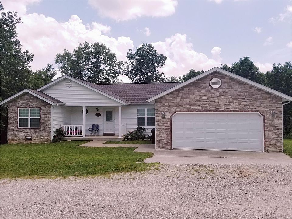 Great home in Waynesville Schools!- This 3 bed 2 bath home has OPEN Living/Kitchen/Dining, with breakfast bar and Beautiful Easy close cabinets with Black Appliances. Plenty of room for a large Dining Table. Detailed ceilings with additional lighting. The split bedroom design, has Garage , Laundry and Master Suite on one side and the 2nd and 3rd bedroom and guest bath on the other side of home. THe Home has detailed brick detail and also has a chain link fenced in back yard. Back deck is off living area with sliding glass door. Home backs to Wooded area. Paved road right up to driveway, very short amount of gravel.