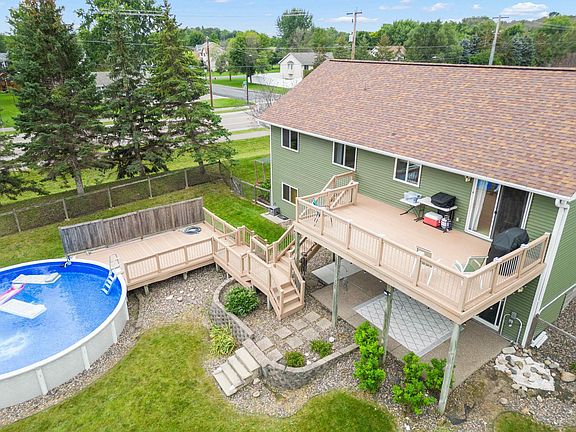 A wonderful split entry home located in Lakeville (Lakeville Schools). The main level features living and formal dining rooms, a kitchen that is open to the dining room, a full bath, three bedrooms, an updated owners bath and an additional full bath. These is also a walk-in hall closet and pantry in the kitchen. The lower levels has a spacious family room that opens to the backyard, two bedrooms, a 3/4 bath and laundry/mechanical room. There is storage under the front foyer. The half acre yard is fenced, has a shed, features a 4 1/2 foot deep pool to enjoy during the hot summers days, and a beautiful two-tier maintenance -free deck. Located on a corner lot, has many updates like owners bath and a spacious three car garage. Close to downtown Lakeville with all the shops and restaurants it offers.