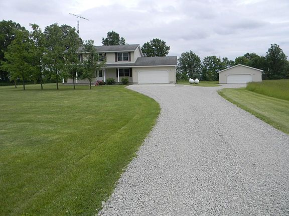 Country living at it's best! 4 BR, 2 1/2 bath 2 story situated on 5.73 acres. Excellent condition, updated in 2011. New well in 2012. Open floor plan. Beautiful hickory shaker cabinets. Hard wood floors in kitchen, dining room and hall. Storage in utility room. Large master bedroom with 12x10 master bath with double sinks, large walk in closet. Large basement, room with pool table that stays, another room used as sitting area. Another area for utilities, and another room for storage. 2 car attached garage and 30x40 detached garage. 2 500 gal. propane tanks owned by owner.