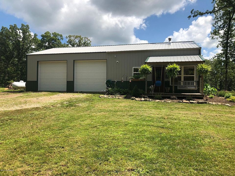 38 beautiful acres with a pond and a 2 year old shouse. 2 overhead doors in the 800 sq ft garage and 700 sq ft of living space in the nice 2 bed 1 bath living quarters. Kitchen and living room has soaring 10 ft ceilings. Custom hickory cabinets. 3 efficient wall heating/cooling units plus a wood stove. Propane gas, well, lagoon, COMO fiber, tv, phone all in place. Open lean-to in back for more storage. Beautiful views and lots of wildlife make this a nature lovers dream.