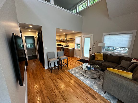 Premium Cottage Modern Comfort Meets Mountain Views Experience elevated living in this newly built, sun-filled cottage, thoughtfully designed with high-end custom finishes and premium amenities. Whether you're here for work, study, or relaxation, this open-concept space offers the perfect blend of luxury and comfort. Private Loft Bedroom Soaring 18-foot ceilings Expansive windows with mountain views Cozy, quiet retreat elevated above the main living space Spa-Inspired Bathroom Heated tile floors Spacious walk-in shower with modern fixtures Sleek and stylish design Fully Equipped Gourmet Kitchen Full-size, French-door refrigerator Full-size range and oven 3-rack dishwasher Espresso machine and coffee station Elegant quartz countertops, open shelving, and under-cabinet lighting Comfortable Living & Dining Dining nook with seating for two Sectional sofa, comfy armchair, and a 65" wall-mounted Smart TV Plenty of natural light and openable windows on both levels Added Comforts In-unit washer and dryer Electronic keypad entry for secure, keyless access Private outdoor patio with seating Street parking directly in front of the home easy and convenient Prime Location Half-block to city bus stop with direct service to the hospital, university, and downtown Lovingly maintained by the owners, who live in the main house on-site The Cottage is fully furnished and move-in ready ideal for professionals, traveling nurses, or anyone seeking a serene yet connected home base. Open to mid-term leases of 30 days or greater. Completely furnished and basic household necessities are provided. All utilities, including fiber high-speed internet, are included.