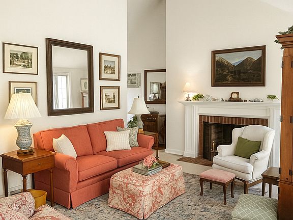 20 Yankee Glen, Madison, Connecticut - Tucked just minutes from the sandy shoreline of Hammonasset Beach State Park, this single-standing condominium combines the serenity of coastal living with the charm of New England design. Behind its private entryway lies a sun-filled home where tall ceilings, a beautiful wood-burning fireplace, and a seamless flow between the living and dining spaces create a sense of warmth and sophistication. The main level offers two spacious bedrooms and two full bathrooms, ideal for single-level living. Upstairs, a large unfinished room awaits-perfect for an artist's studio, home office, or third bedroom, offering endless creative possibilities. Step through the glass doors onto your private outdoor deck, surrounded by mature trees and gentle coastal breezes. In a community known for its peaceful ambiance and proximity to beaches, shops, and restaurants, 20 Yankee Glen captures the essence of refined seaside simplicity-a retreat designed for those who value both comfort and inspiration.