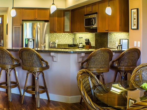 Note: Not all pictures show the current improvements. Updated pictures are coming soon. Hale Mermaid is a lovingly maintained 2-story, 3BR/3BA townhouse-style condo with a one-car garage and additional parking space. This very successful and highly rated vacation rental has a large gourmet kitchen with African mahogany cabinets, granite counter tops, glass back splash, and new stainless-steel appliances. The large living and dining area open up to one of two lanais. The master suite features another private lanai, walk-in closet, large bath with soaking tub, separate shower and double vanity. This property has been impeccably maintained & updated with top-of-the-line décor & furnishings including: • New refrigerator 2021 • New KitchenAid dishwasher 2019 • New LG front load washer and dryer 2018 • New Acacia hardwood floors on lower level 2017 • New high-end carpet for stairs and upper level bedrooms 2019 • New kitchen backsplash tile 2017 • New garage door opener and keypad 2018 • Most of the windows, all sliding glass doors & screens replaced between 2017 and 2019 • Crown Molding & painted wood-trimmed windows throughout • Built in cabinets in laundry room • Upgraded ceiling fan in master & new ceiling fan on lanai • Nest thermostat • New Trane air handler motor 2020 • Pottery Barn Rods and Custom drapes Halii Kai is famous for its one-of-a-kind private ocean-front Beach Club with private restaurant and bar, multi-level lagoon pools, kiddie pool/wading area, waterfall, soothing sand-bottom hot tub — all with an unobstructed panoramic view of the Pacific Ocean and breathtaking sunsets. Amenities also include ocean-front fitness cabana, grilling area, tennis court, and half-court Basketball court. Property is being sold fully furnished per inventory list.