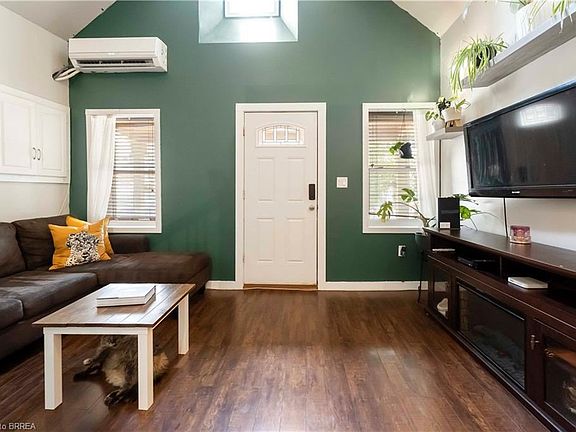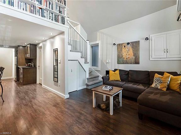 Whether you're a first-time buyer, an investor, or looking to downsize, this charming and cozy bricked bungaloft offers everything you need. This home combines modern conveniences with a warm and inviting atmosphere. Nestled on one of the most quaint and picturesque streets in the Crown Point area, it boasts a lovely covered porch that welcomes you home. The main floor is designed with an open concept that creates a spacious and airy feel. It features laminate flooring, recessed lighting, and 14ft high vaulted ceilings that add a touch of elegance. Built-in shelving offers a perfect spot for books or displays, and large windows flood the space with natural light. The kitchen is equipped with dark-toned shaker cabinets and drawers that include soft-close technology for a seamless experience. Stainless steel appliances, granite countertops, make meal preparation and cleanup a breeze. The versatile loft area can function as the second bedroom or a cozy sitting room. This space is made even more convenient with an ensuite laundry, allowing for easy access and efficient living. Towards the back of the home, you'll find a four-piece bathroom featuring heated flooring—ideal for those chilly mornings. The backyard is accessible from one side of the home and a rear back door. This spacious 100 ft deep lot is a blank canvas, perfect for creating a personalized outdoor oasis with a fire pit area or outdoor furniture for entertaining guests. The home includes a one car parking space, with ample street parking available for visitors. The charming street location is close to all amenities. Don't miss the opportunity to own this adorable home that perfectly blends comfort, style, and practicality. Affordable utilities with the cool/heat exchange system, high efficiency heat pump (2017), shingles replaced (2013), updated plumbing and electrical (2013), eavestroughs cleaned (2024), cool/heat system maintenance (2024). This lovely bricked bungaloft is ready to welcome you.