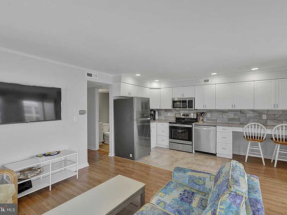 Stunning 3 bedroom / two bath fully furnished Ocean Block condo move in ready! Completely updated kitchen with stainless steal appliances and granite counter tops. Fresh paint through out the condo and no popcorn ceiling, new pergo flooring throughout the unit, both bathrooms remodeled, and condo also has two balconies! Fabulous uptown location close to popular restaurants and one block from the beach. Plenty of off street parking located in the back of the building. Make this bright and airy condo your Ocean City oasis!
