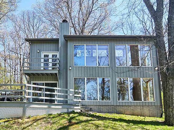 WATERFRONT! 2.22 Acre wooded waterfront lot. Beautiful mix of upscale cabin, woods and great shoreline and water. Contemporary, Salt Box home is the right house for someone who enjoys nature and wants magnificent views from every room. Main floor has a bedroom and a full bath, the upper level has 2 bedrooms, a full bath and a loft family room area. No garage but plenty of room to build and to expand the home as well. Excellent opportunity to get on the lake and enjoy a beautiful, peaceful hideaway.