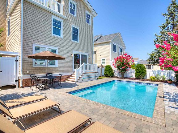 With un-matched quality and meticulous detail, this 6 bedroom, 6 and one half bath beach home will exceed all of your expectations in search of your own piece of Avalon Luxury living. This custom Tom Welsh home is rare and highly sought after, with vistas and perched views of the stunning beaches of Avalon, New Jersey. This home employs plush gardens that wrap around a quaint shaded mahogany front porch. A strong brick clad foundation and chimney accents dominate amongst beige cedar shake siding and classic wood cedar shake roofing and balcony over-hangs. Architecturally highlighted by detailed ornamentation, curb appeal is an exclamation point on what is a masterfully designed beach home. Immediately entering the home you notice classic hardwood floors throughout that are strategically contrasted by crisp and bold wainscoting. A large 3 story elevator with outside access lies right beyond the foyer entrance making for exceptional convenience. Downstairs you have two large bedrooms, two full baths, and a gracious laundry room with upgraded granite counter tops and large under-mount sink. The companionway brings you toward the back of the home with a very large family room, granite wet bar, sink, drink refrigeration, and a private slider door access to an amazingly beautiful back yard and pool area. Out-back you notice the beautiful gardens that border stamped hard-scape pavers, an outside shower and plenty of space to relax and soak up the warm summer sun. As you move up the stairway to the cozy and stylish public spaces you immediately notice large vaulted ceilings above a grand well-lit living area. With built in fireplace ensconced in granite and built in TV mount this living area makes for a nice cool family gathering space. The grand country style kitchen enjoys well lit southern diffused light. Here you have upgraded granite counter tops, under-mounted sink, highly detailed ceramic tile back splash, and beautiful off-white and mocha trimmed cabinetry; all detailed with upgraded under mount and inside lighting. The large center island covered in granite gives you plenty of space to prep, entertain and master the perfect family dinner parties. Outside you have a gracious full length fiberglass deck with shaded over-hang, dinette and grill with natural gas hook-up. Here you can entertain guests all the while enjoying beautiful ocean views down 19th Street. On the third floor you have your private master and junior master suite. Gracious in size the front junior suite also has its own private fiberglass deck with vinyl railings, gas fire-pit and spectacular perched beach views. Toward the back of the home you have a very large master suite with slider doors and it's own private fiberglass deck overlooking the pool. This home is fully loaded, professionally decorated and maintained with upgraded trim-work, a meticulously kept garage, central vac system, amenities, and storage. This home is designed specifically for the experienced buyer as it offers a perfect balance of architectural sensibility and breathtaking views.