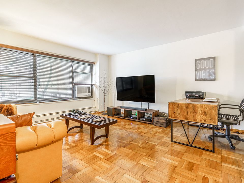 Adorable mid century modern aesthetic in this four room 1 bedroom located near the heart of Astoria. Large entry foyer serves as a dining room or workspace, king sized bedroom plus spacious living room overlooking Queensview'ss park-like grounds. Windowed full kitchen features plenty of cabinet space with a minimalist modern feel, stainless steel appliances and ample counter workspace. The unit enjoys tons of storage including a walk-in near the entry. Queensview is nestled near bustling Crescent St, shopping, restaurants and transportation. 2 cats allowed - sorry, no dogs. Parking available.