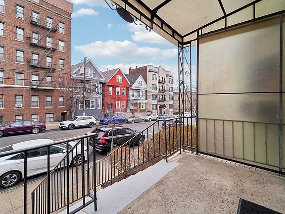 This home greets you with beautiful views of the Manhattan skyline and the Hudson River. Welcoming you into the grand living room with beautiful crafted crown moldings throughout, beautiful bay windows, as well as natural peaking through its unique stained glass. The home features beautiful hard wood floors throughout. The kitchen has stunning marble countertops, beautifully crafted cherry wood cabinets with plenty of space. This kitchen leads you to an outdoor deck and backyard with impeccable marble stone tiles. Perfect for family gatherings, bbq's, as well as entertaining guests. This home is centrally located near NJ Transit public buses to NYC, The Light Rail station, The Ferry at Port Imperial, shops, notable restaurants, schools, parks, and worship.