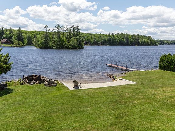 A once in lifetime opportunity and investment! Double lot .95 acres with 198' of water frontage, including a sandy beach and private dock on the beautiful and tranquil Sunrise Lake! Unlimited possibilities ranging from a family compound, to short term rental property or year round home. Fall in love with this sprawling 4 Bdrm one level waterfront home with finished walk out ll, utility garage and det garage on one lot. Featuring a chefs kitchen, living room with stunning water views, a 24x28 Primary master suite with cathedral ceilings , private bath, walk in closet and slider leading to the multi tiered deck. Finished family room in LL with Harmon Pellet stove and stone hearth. Freshly painted, new flooring and new vinyl siding. The second lot is home to a 40ft long two car tandem garage, large enough for a boat with RV hookup and expansive raised bed gardens that could be featured in Better Homes and Gardens- a blank canvas to build if you so desired! If that captures your attention- there is a possibility to purchase a third adjoining cottage. Half an hour to the lakes region as well as the Ocean and just over an hour to Boston. It doesn't get any better than this! Owner will sell furnished. Turn key!