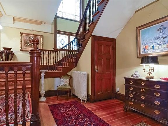 Historic 1897 Queen Anne home of Emile W. Grauert, Manhattan architect and former Weehawken mayor. This magnificent 3-story home has original architectural detail including wrap-around porch, widow's walk with skyline view, extraordinary fireplaces, 10 stained glass windows, grand staircase with reception hall, rear servant's staircase, hardwood parquet in-laid floors, 10' ceilings, spectacular curved plaster walls and ceilings, built-in china closet, stunning woodwork and antique chandeliers. Home sits on a triple lot (75' x 100') with doublewide driveway with spectacular gardens and bluestone patio. First floor has a grand foyer with large stained glass window, oversized parlor, banquette sized dining room, library, newly renovated kitchen and bath w/butler's pantry and back porch. All rooms in this elegant home have large proportions and will suit all entertaining needs.this Victorian home was Originally Build as a One-family.this home would make great one-family home again.