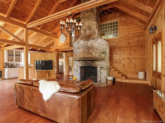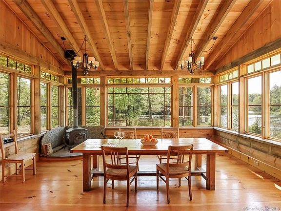 Secluded Waterfront Retreat After a long day of work this property offers the perfect place to put up your feet, unwind and take in the tranquil scenery that surrounds you while your stress washes away. Set on 9.9 acres of waterfront on Mashapaug Village Pond the property has frontage on 2 sides and simply beautiful views from every window. The dining room's 3 walls of windows makes it a simply spectacular room for entertaining friends & family or just relaxing with a cup of coffee and taking in the view. Steps away is the great room with soaring ceilings and a grand two story stone fireplace that will warm the home for wonderful winter holidays. The open floor plan continues to the kitchen and breakfast nook/sitting area where the views continue to delight. Continuing on the first floor you'll find the gracious master bedroom and a bath with a gorgeous and very generously sized shower. Moving upstairs there is a bedroom that looks over the first floor and a full bath. The lower level houses another bedroom or office that walks out to the pond as well as two large storage areas. The finishing touches have just been completed on the stone faced guest house, this is so beautiful your guests may never leave With 2 bedrooms and sweeping views of the pond it is magnificent Antique doors and windows were incorporated into the design giving this home character that can not be rivaled. 2 car garage & plenty of additional parking for guests Bring your kayaks & come home to stay.