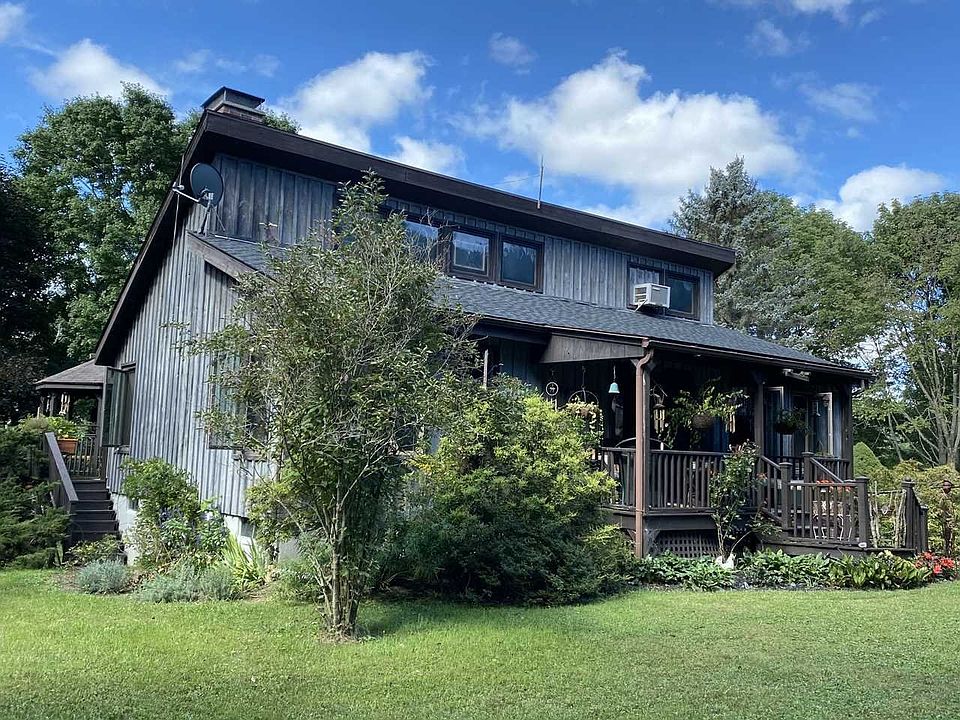 Secluded down a long driveway and adjacent to over 200 acres is this two-bedroom cottage built in 1975 in rural Stanfordville. Vaulted beamed ceilings, wood floors, and two fireplaces is all you need for your country getaway! A very large deck off the living room is added summer living space for relaxing and dining that overlooks fields and mountains. There is also a covered porch in the front of the house. Enjoy peace and quiet on nearly 5 acres that includes a pond, a fenced veggie garden, and fruit trees.