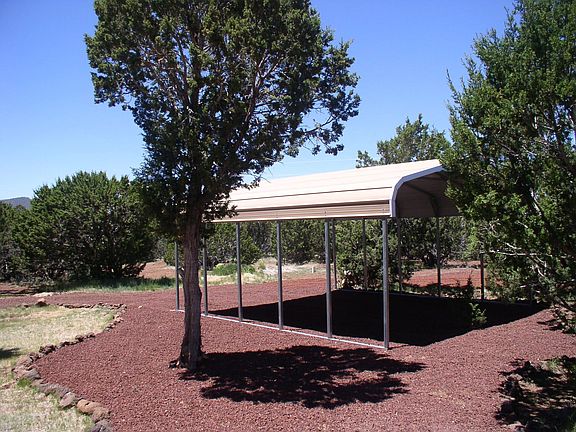 half manufactured. half stick built with 3 add-on covered patios (1 is 16x32). (see photo) 25x40 steel garage, 2 car carport, firepit, 9x12 shed, 31x15 living room, 3 yr old formica countertops (kitchen & bath) stainless steel appliances, pantry, mud room, patio furniture, firepit, cactus garden, 250+ trees, fenced w 2 gates, wrap around graveled drive. Secluded but only 15 mins to town (Show Low, AZ) Horse property